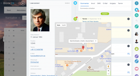 Bitrix24 CRM bietet eine absolut neue Benutzeroberfläche zur Verwaltung von Leads, Kontakten, Angeboten, Rechnungen usw. an. Sie können Anrufe machen, E-Mail oder SMS senden und sonstige Aktivitäten planen – alles erfolgt innerhalb von der neuen Seitenleiste im CRM.